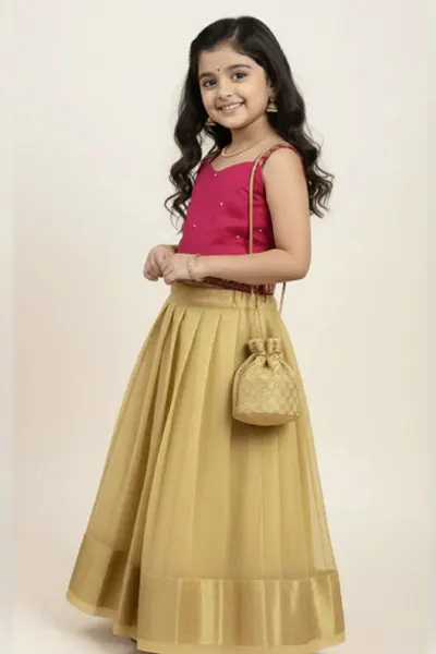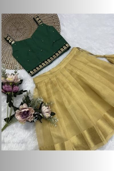 • Fabric :Silk cotton top, Perimum soft Banarasai tissue Skirt.